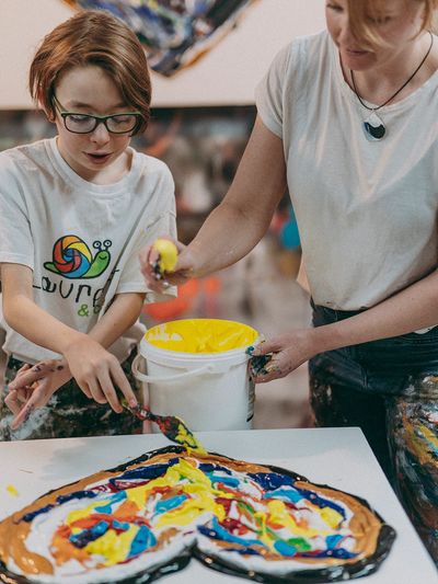 C'est l'histoire de l'artiste Cynthia Coulombe-Bégin. Touchée par l'histoire de Laurent, elle l'a généreusement invité à son atelier pour créer avec lui une oeuvre unique: un coeur aux couleurs de Laurent et Cie. L'oeuvre est mise à l'encan afin d'aider les familles d'enfants atteints de maladie orpheline.